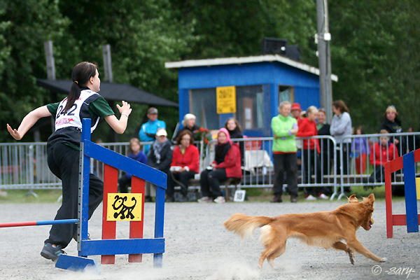Finaalirata oli profiililtaan varsin mielenkiintoinen. Siinä ei ollut keppejä, ja ainoa kontakti oli aa. Radan alussa oli hyppy, rengas ja pituus, jolta käännyttiin 90-astetta toiseen suuntaan. OKK'lla on hajoava rengas, mitä Riesa ei ole tehnyt kuin kahdesti. Jäin liikaa varmistamaan, ja Riesa teki varmaan kymmenen metrin lenkin pituuden jälkeen.. Olin myöhässä, ja seuraavassa kohdassa lenkitettiin taas.. :D Sen jälkeen sain Riesan hanskaan, ja nollalla maaliin! Hienoin pieni!